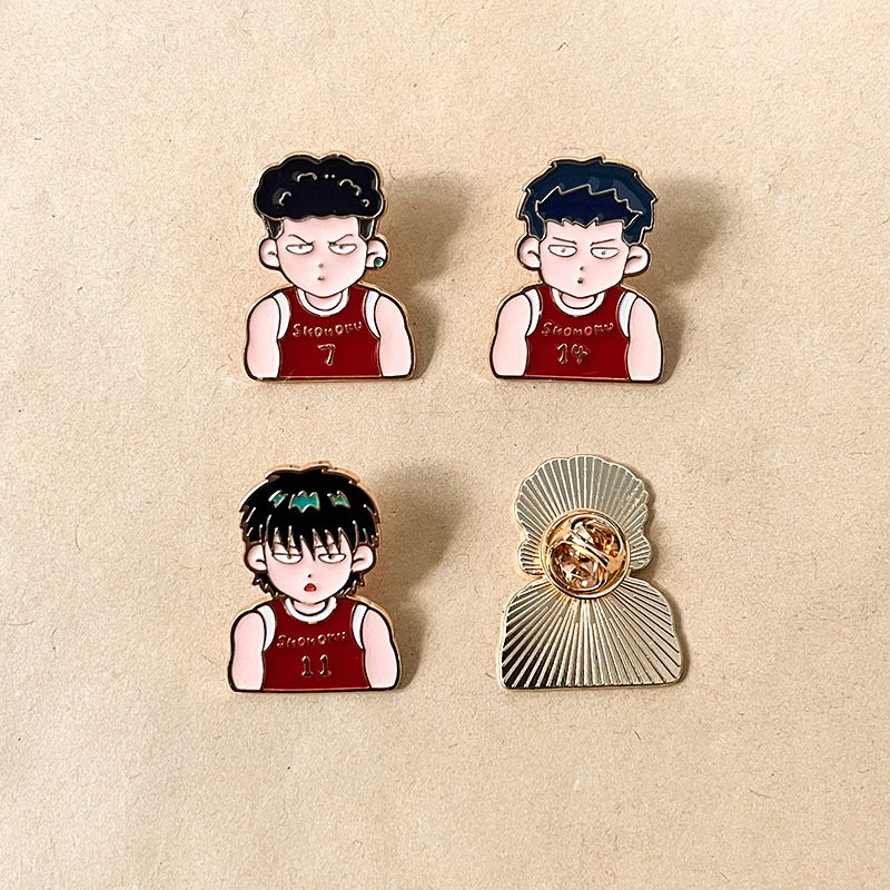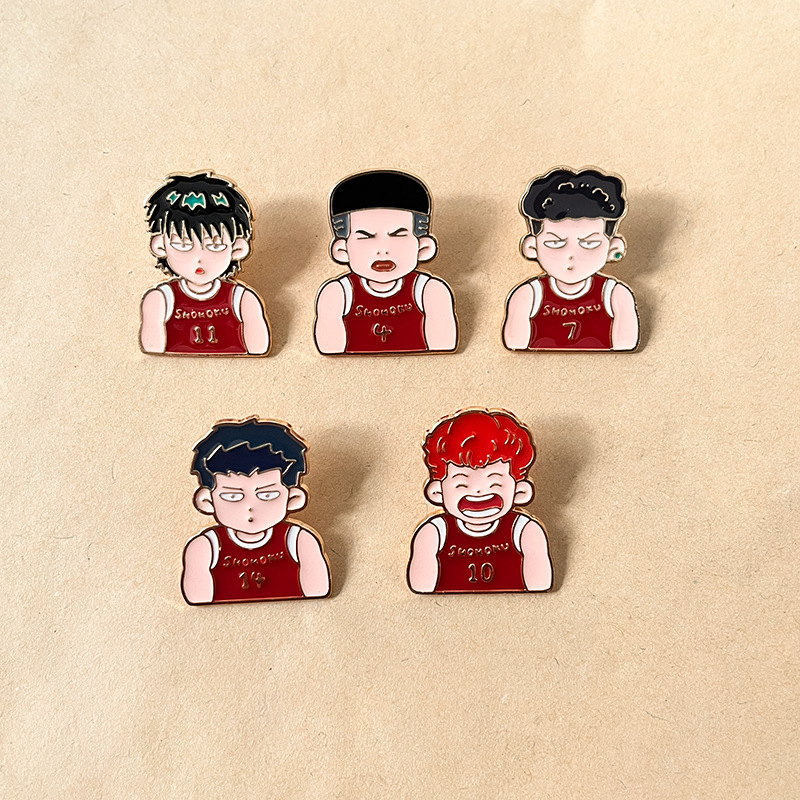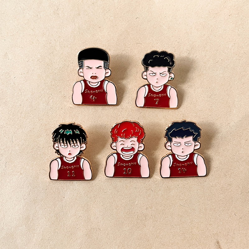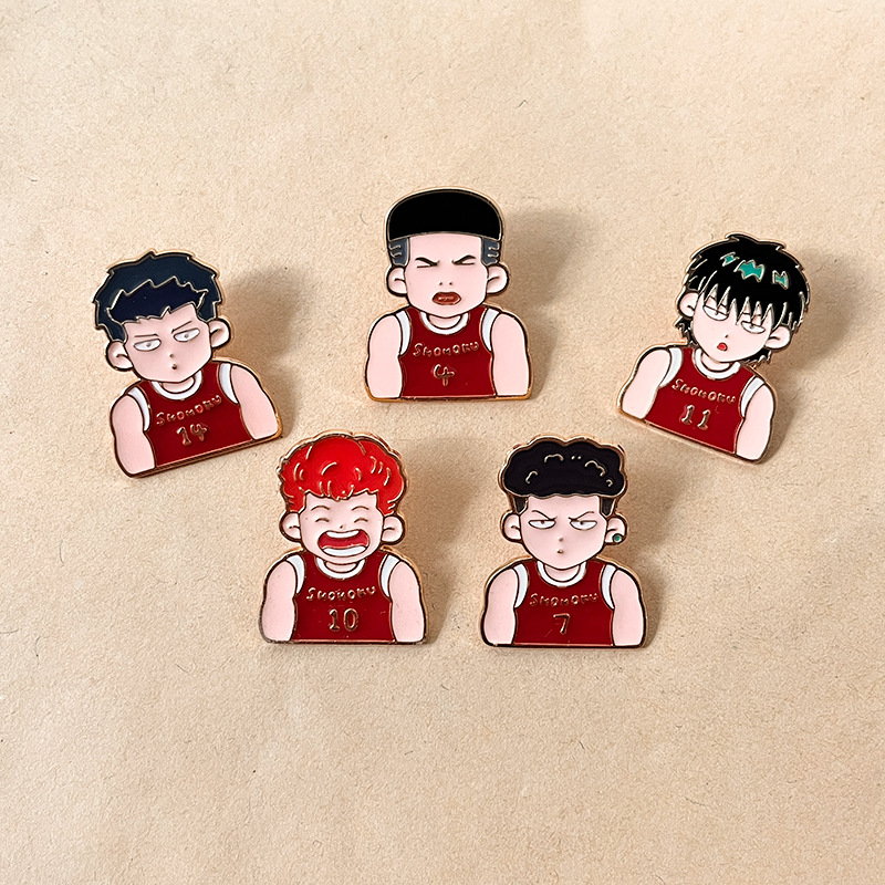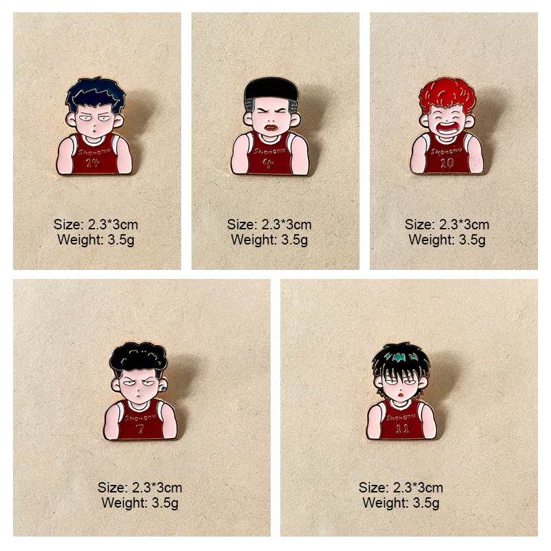 Shohoku Team Character AdornmentsSelling Points: 5 iconic Slam Dunk Shohoku player pins (Hanamichi, Rukawa, etc.)—vibrant, fan-focused flair. Perfect for anime lovers to add retro basketball style to bags/jackets; ideal for daily wear or collectible decor.