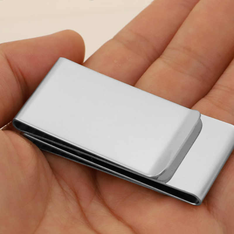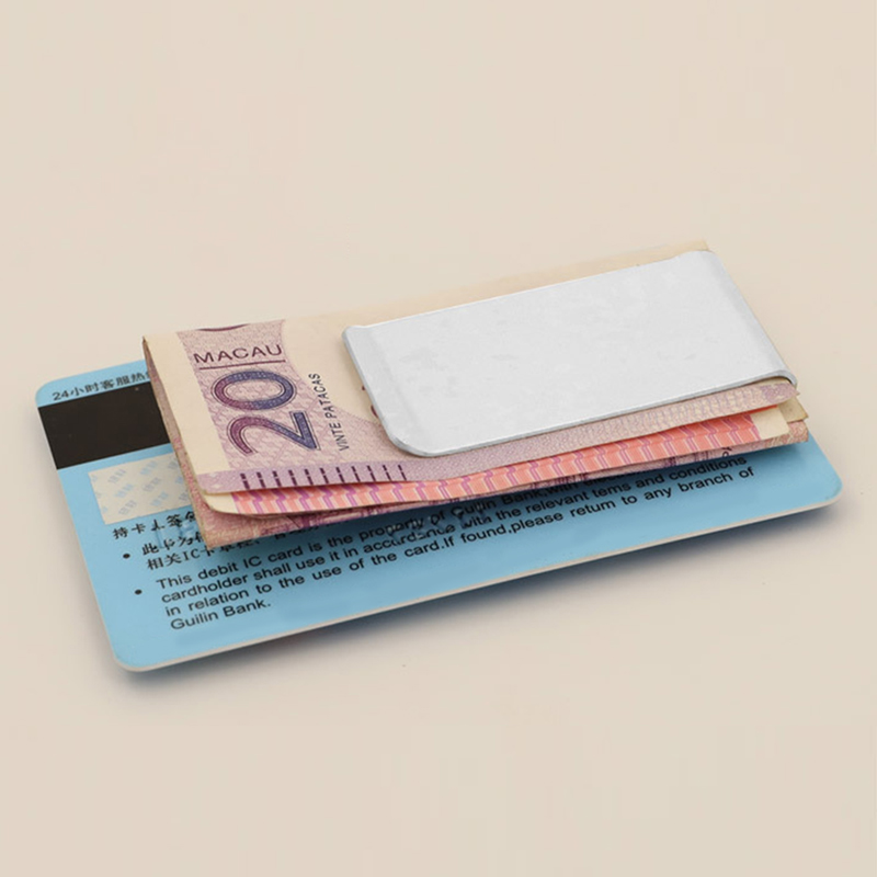 This sleek silver metal money clip combines minimalist style with reliable functionality: its slim, compact build slides seamlessly into pockets, while the sturdy metal grip keeps cash and cards securely in place—perfect for tidy, on-the-go daily use.