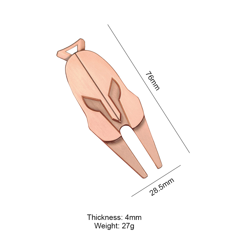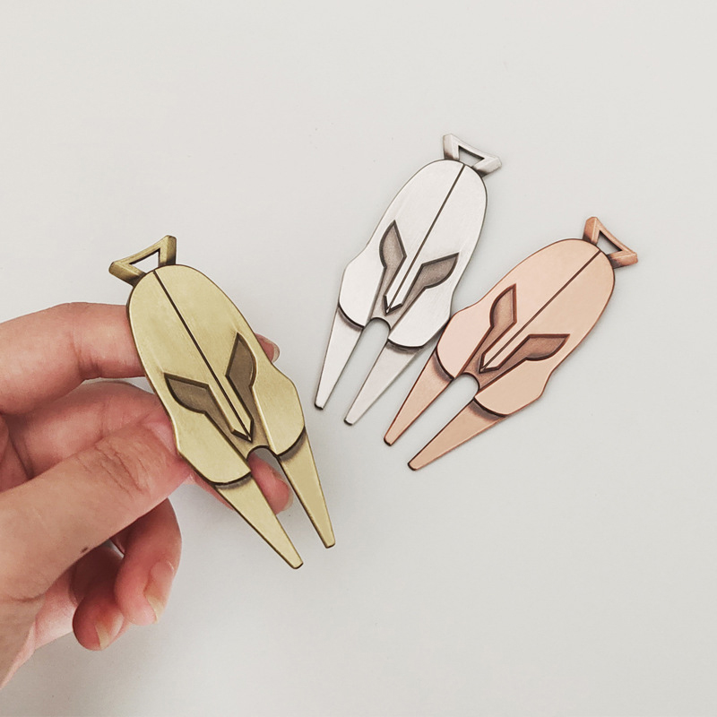 This 27g (76mm×28.5mm) divot tool features a bold Spartan helmet design (4mm thickness). Sleek, durable, and functional for green repairs, it blends warrior-inspired style with on-course practicality—ideal for golfers craving distinctive, themed gear.