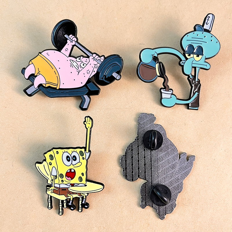 These SpongeBob pins have scene-shaped designs (Mr. Krabs’ cash pile, Patrick’s weight bench) with bold, glossy detailing. They adorn backpacks, jackets, or hats—perfect for cartoon lovers to showcase nostalgic, humorous flair in daily outfits or fan gatherings.