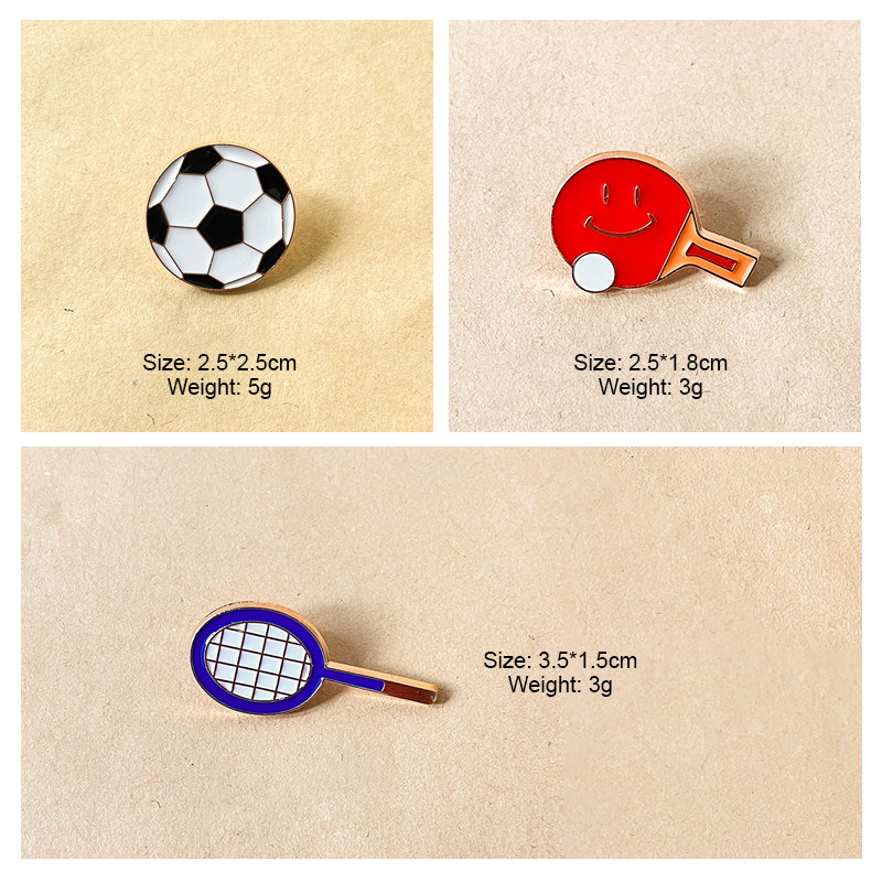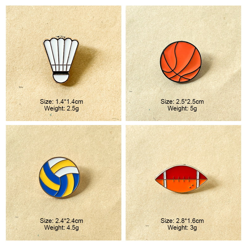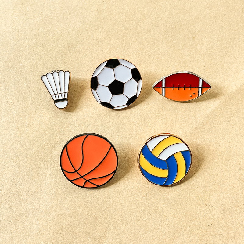 Features glossy enamel designs of 5 sports items (badminton, soccer, football, basketball, volleyball). Perfect for sports fans to add vibrant, themed flair to bags, jackets, or lanyards—ideal for athletic styling or hobby accessory decor.