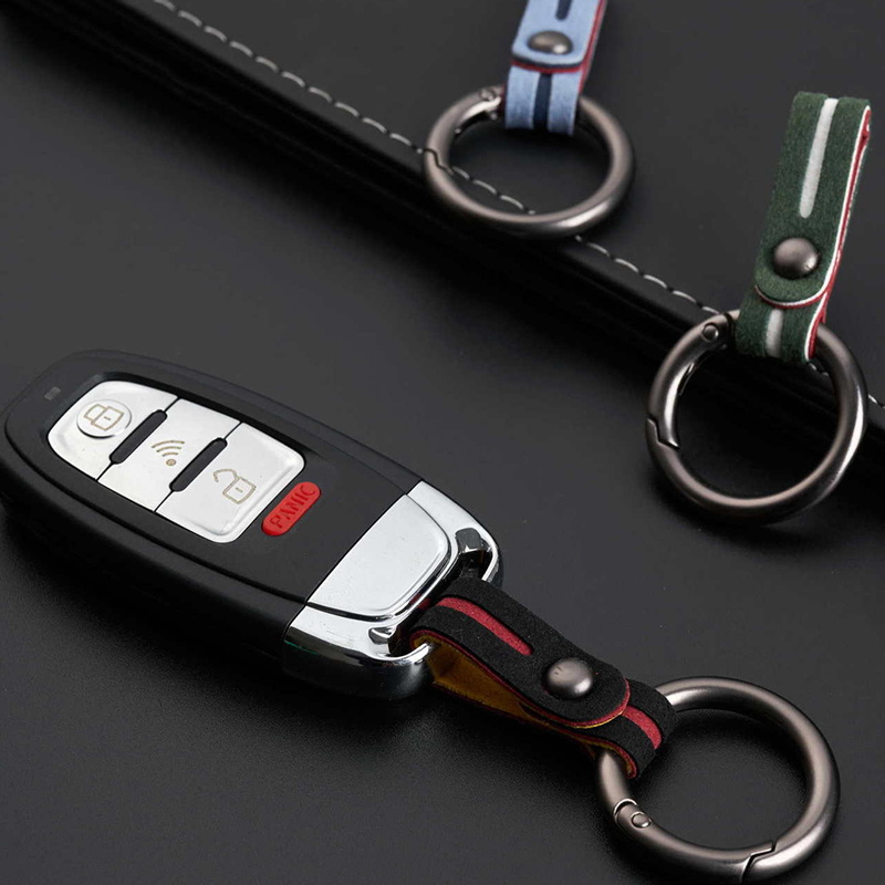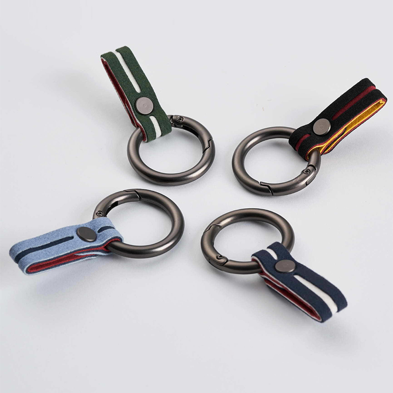 This keychain set features suede straps in navy, light blue, green, and multi-color designs, paired with sleek metal rings. With a minimalist, stylish design, it’s ideal for daily key organization, perfect for adding a touch of texture to bags or keys, and suits both casual and refined lifestyles.