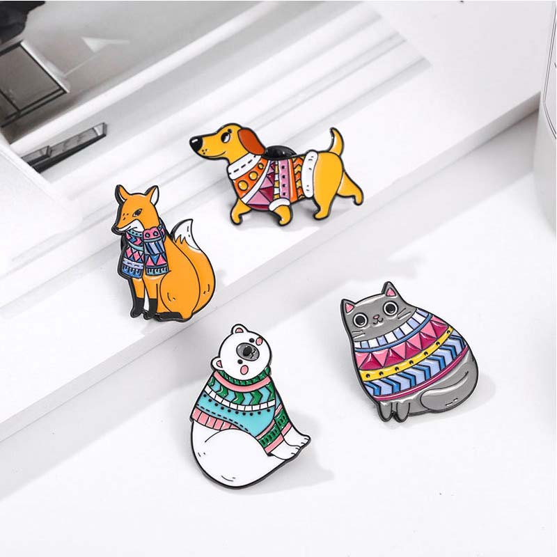 Product : Sweater-Clad Animal Enamel Pin