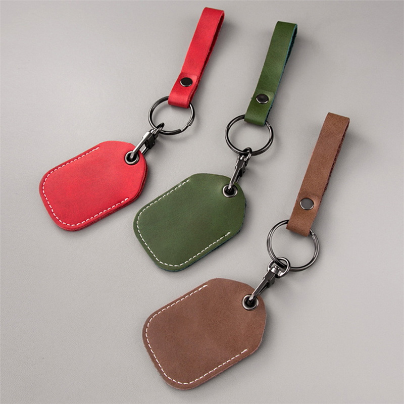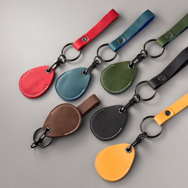 These keychains feature unique teardrop leather charms in vivid colors, with built-in slots for NFC door-opening chips. Paired with matching leather straps and metal rings, they blend style, functionality, and tech compatibility seamlessly.