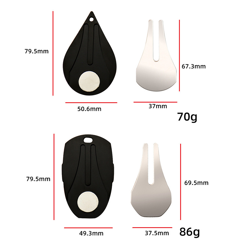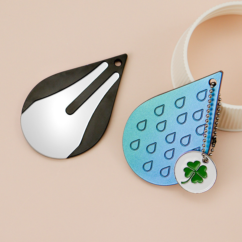 This 70-86g tool (79.5mm) features a teardrop design (black/blue finishes), plus a 4-leaf clover charm for luck. Its sleek, magnetic build simplifies green repairs—portable via the chain, stylish, and a fun, functional pick for golfers craving a touch of whimsy.