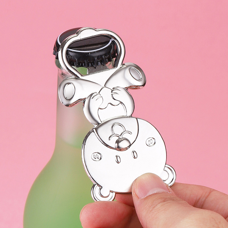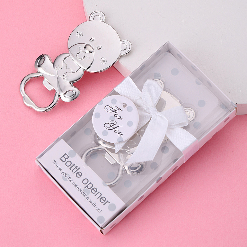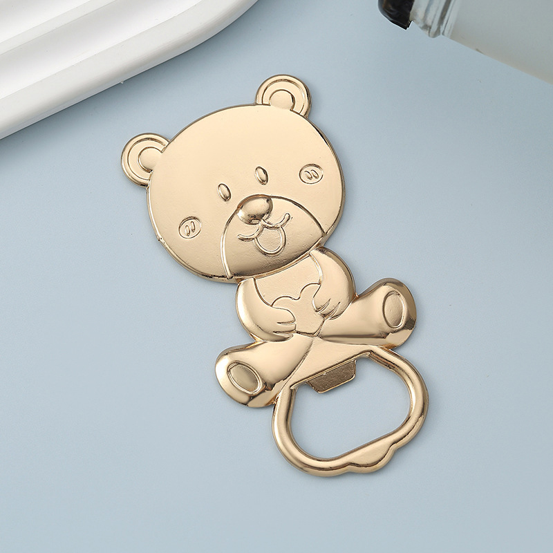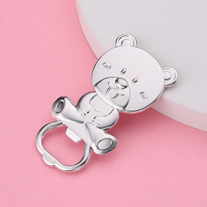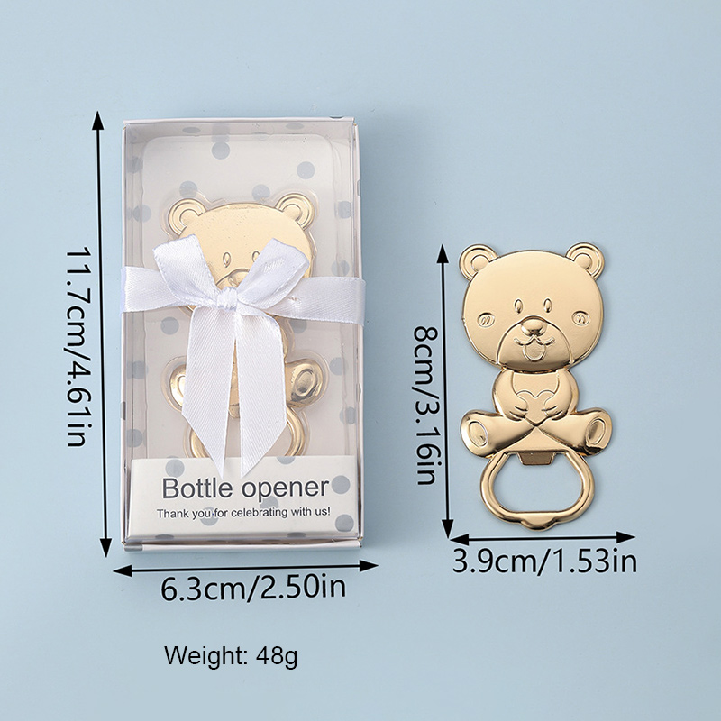 This 48g (8cm) cute teddy bear opener comes in glossy silver/gold. It pops caps easily, making it a charming favor for baby showers, kids’ parties, or a playful gift for bear lovers—blending adorability with practicality.