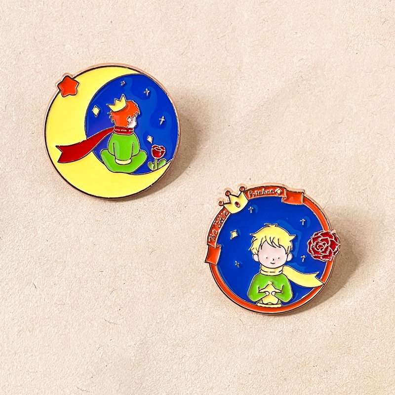 These The Little Prince enamel pins feature diverse shapes (round, moon-shaped, glass dome-styled) paired with classic elements (rose, fox) in warm hues. They decorate caps and bags, perfect for fans to infuse nostalgic, romantic charm into their accessories.