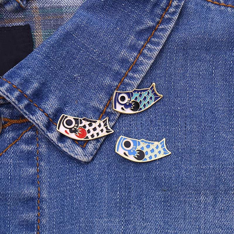 Features vibrant, traditional koi fish shapes (red, blue, etc.) with glossy enamel, symbolizing good fortune. Ideal for adding cultural charm to jackets, bags, or lanyards—perfect for daily styling or cultural accessory accents.