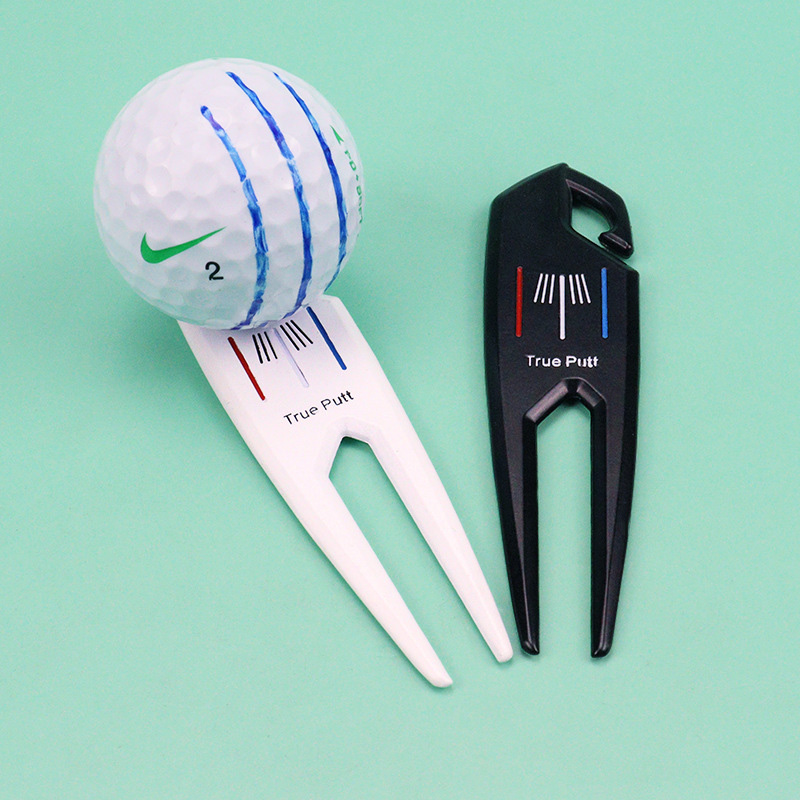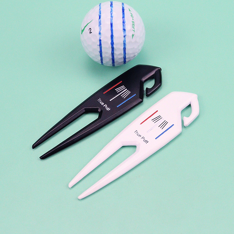 This 40g (100mm) sleek, ergonomic tool (black/white) fixes green divots. It features color-coded alignment markers to enhance putting precision, plus a loop handle for portability—merging functional design with on-course performance, ideal for golfers focused on putting accuracy.