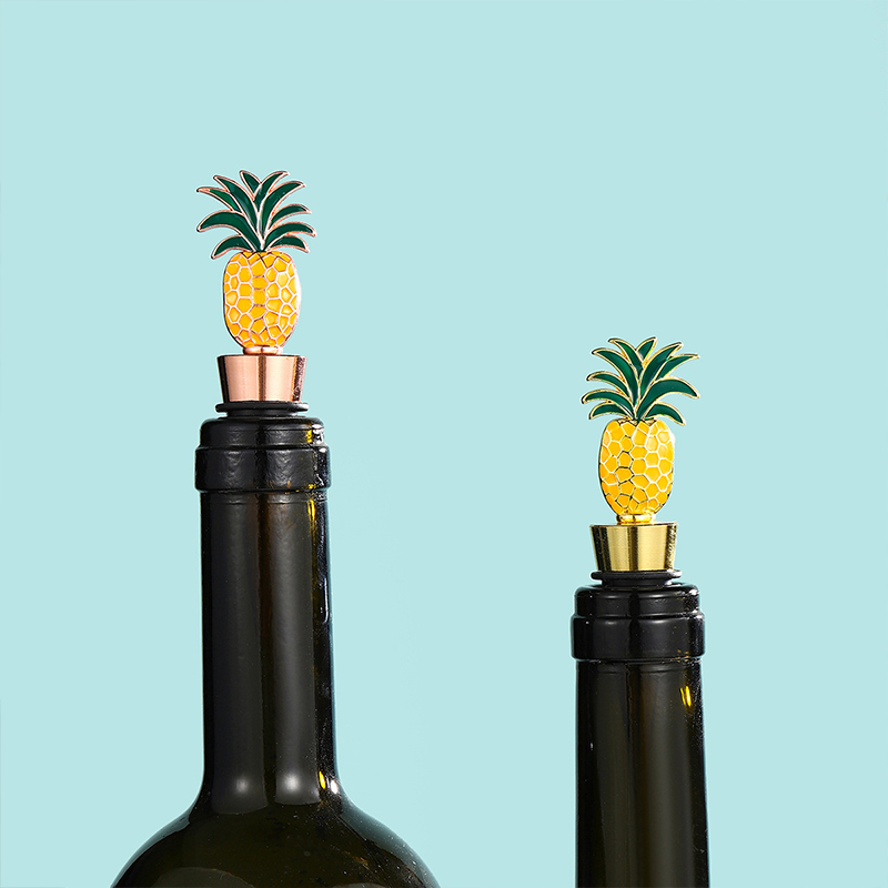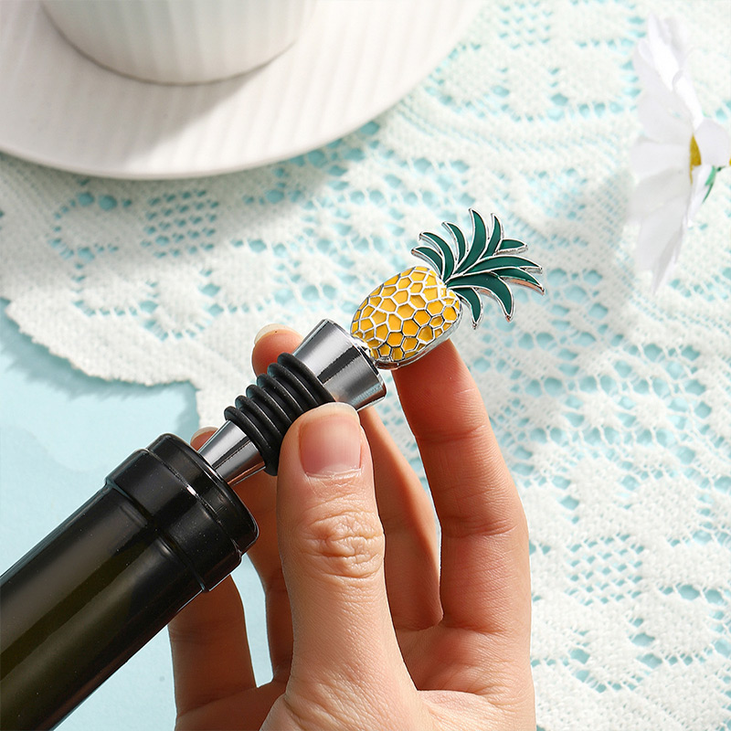 This 35g stopper is shaped like a vivid yellow pineapple (with green leaf accents) atop a sleek gold/rose gold/silver base. Its silicone grip seals wine bottles tightly, doubling as a playful tropical decor piece—ideal for summer parties, beach events, or gifting to tropical style enthusiasts.
