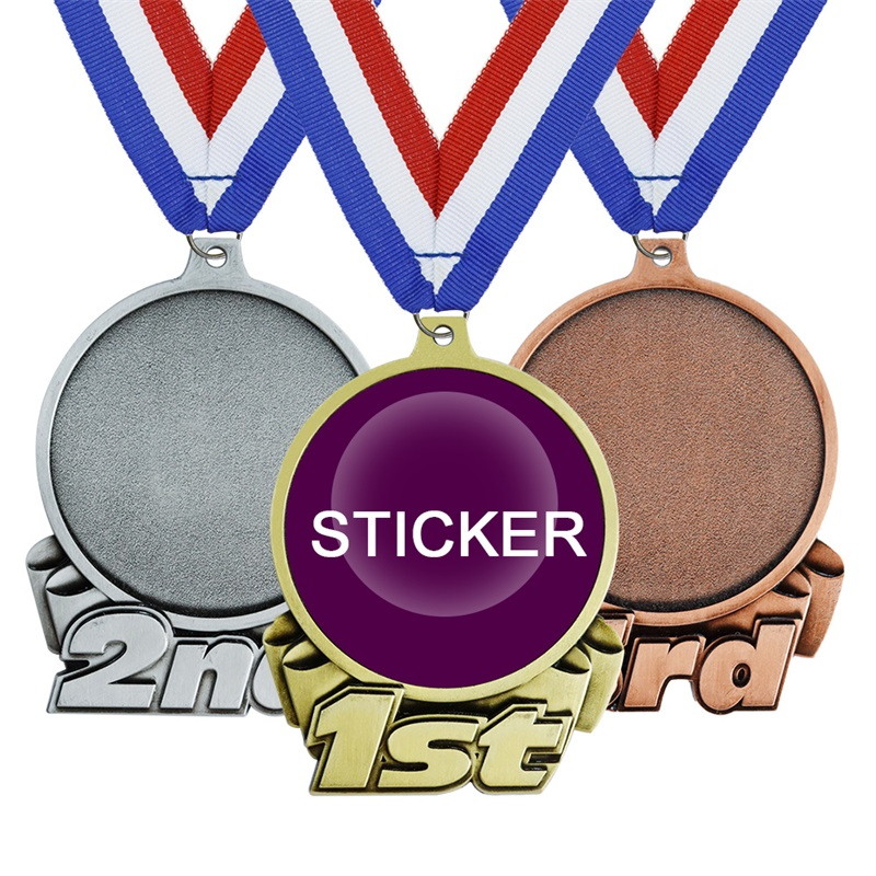 Elevate your competition honors with our zinc alloy antique gold/silver/copper medals—boast a custom sticker logo in the circular center, turning a classic award into a personalized tribute that celebrates standout achievements uniquely