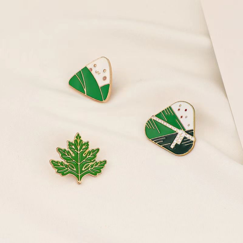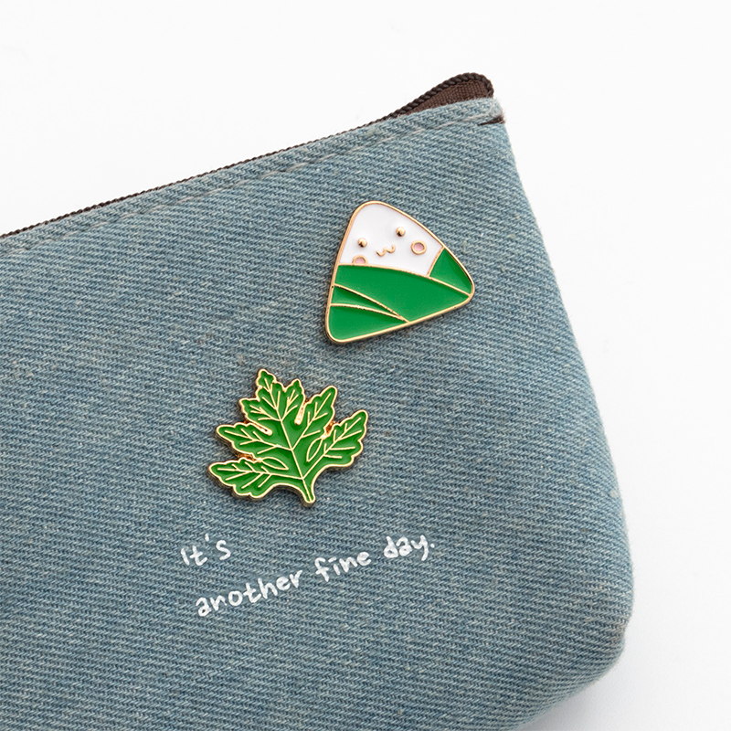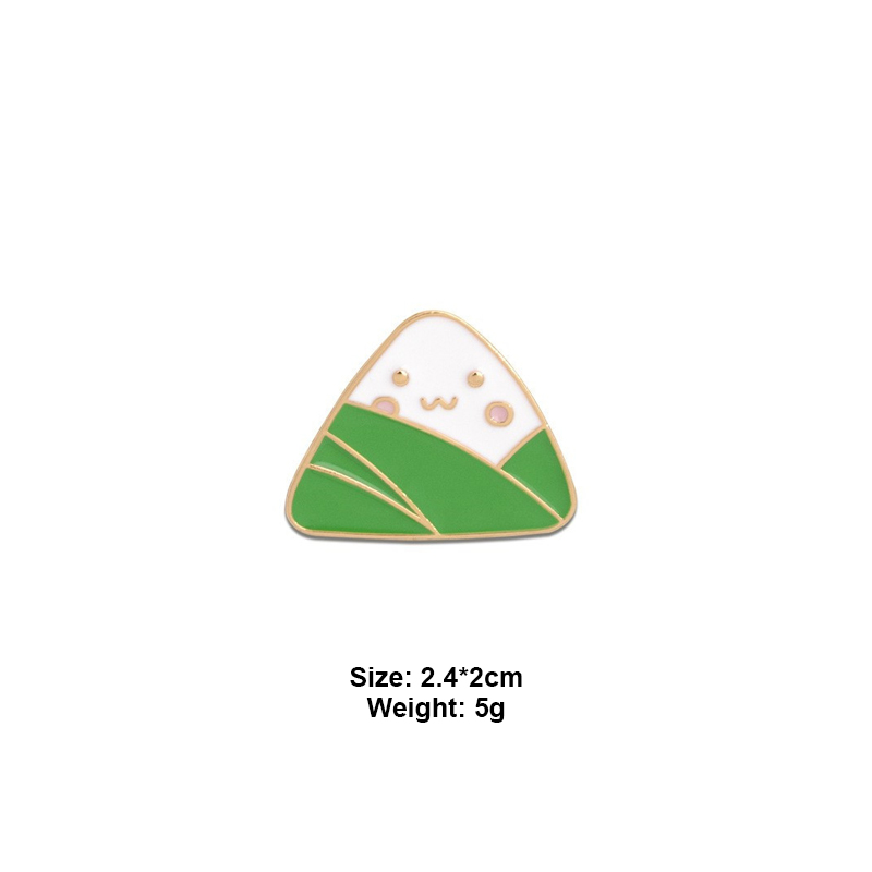 These vibrant enamel pins feature 2 zongzi (sticky rice dumpling) designs & a mugwort leaf—traditional Dragon Boat Festival motifs. Detailed, playful styling adds cultural charm to gear, perfect for food lovers or as festive, whimsical accessories.